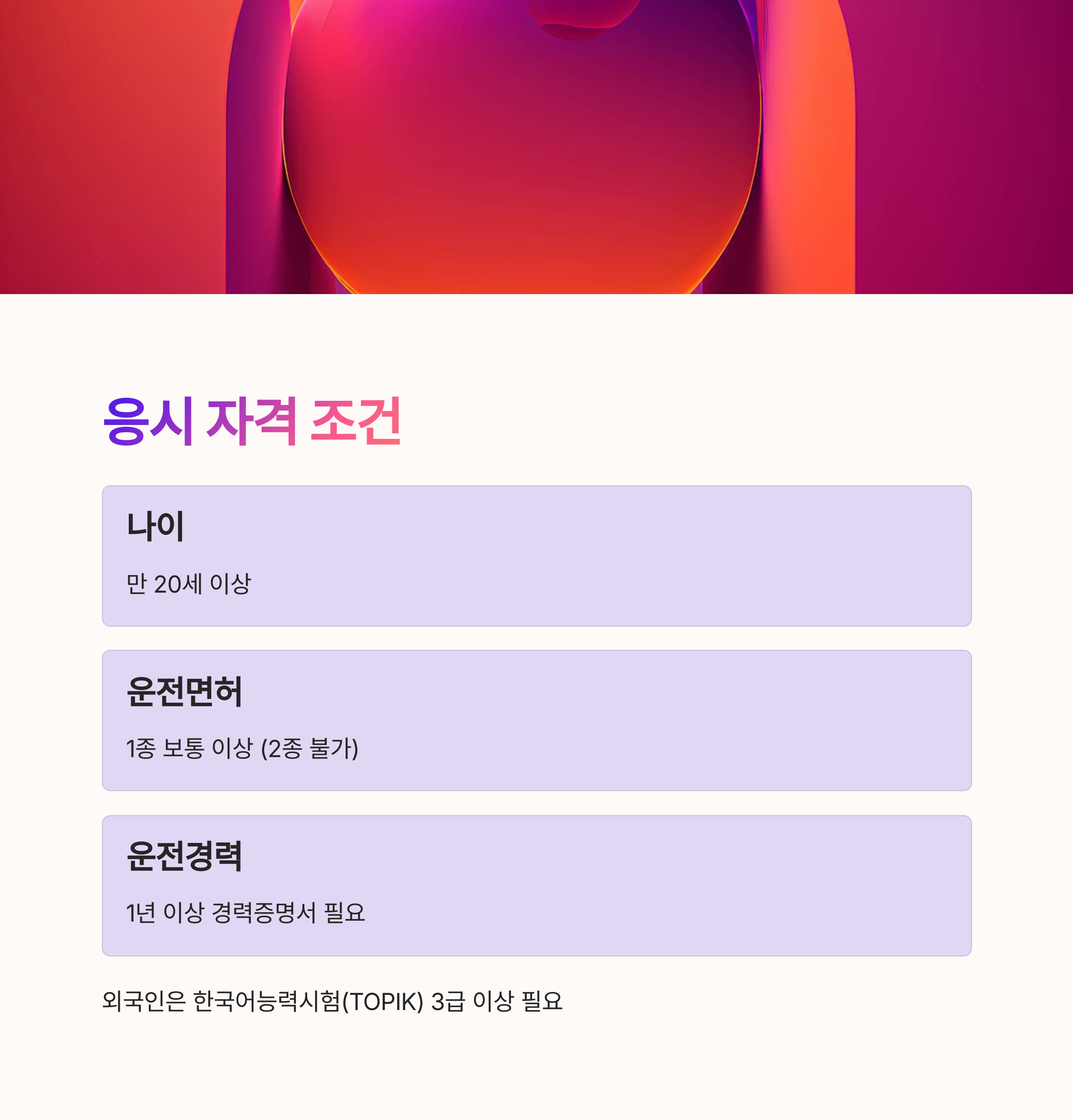 | 운전 경력 | 1년 이상 | 경력증명서 제출 필요 |