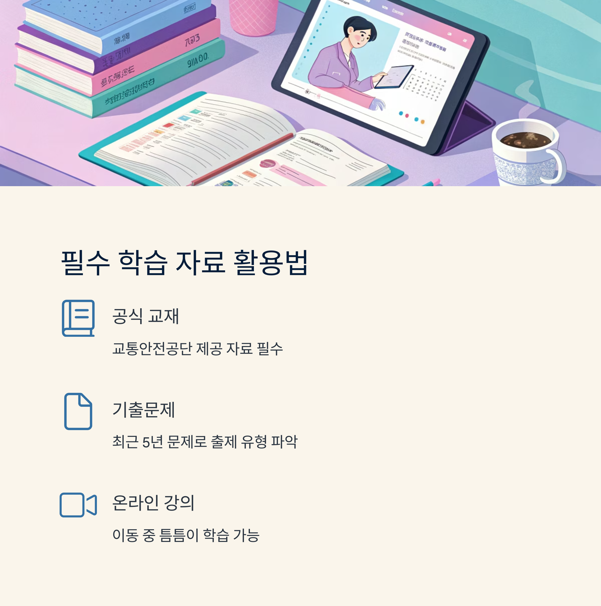 교통안전공단에서 제공하는 공식 교재는 꼭 참고해야 해요. 이 자료에 맞춰 시험이 출제되기 때문에 가장 기본이자 핵심이 되는 자료랍니다.