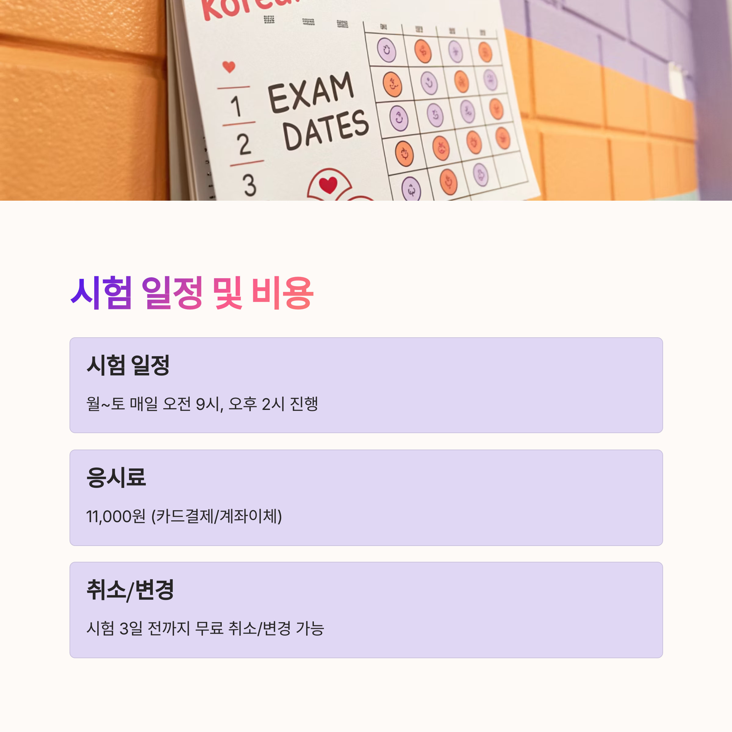 📅 시험 일정 및 비용 안내