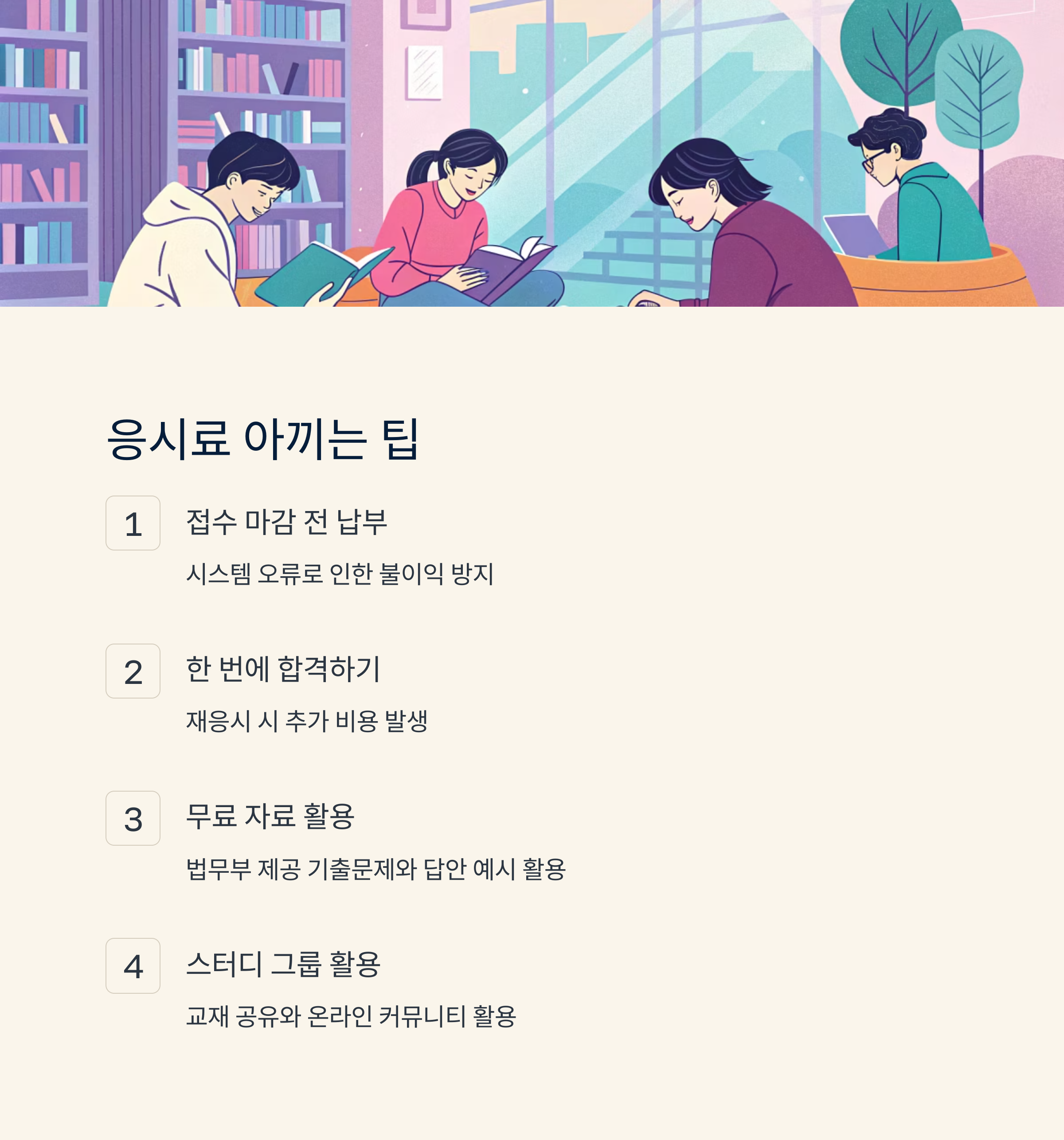 둘째, 한 번에 붙는 게 가장 경제적이에요! 재응시는 응시료뿐 아니라 생활비, 학원비, 시간까지 추가로 드는 비용이 크죠. 그러니 전략적으로 학습 계획을 세워 첫 시험에 합격하는 것이 가장 큰 절약이에요.