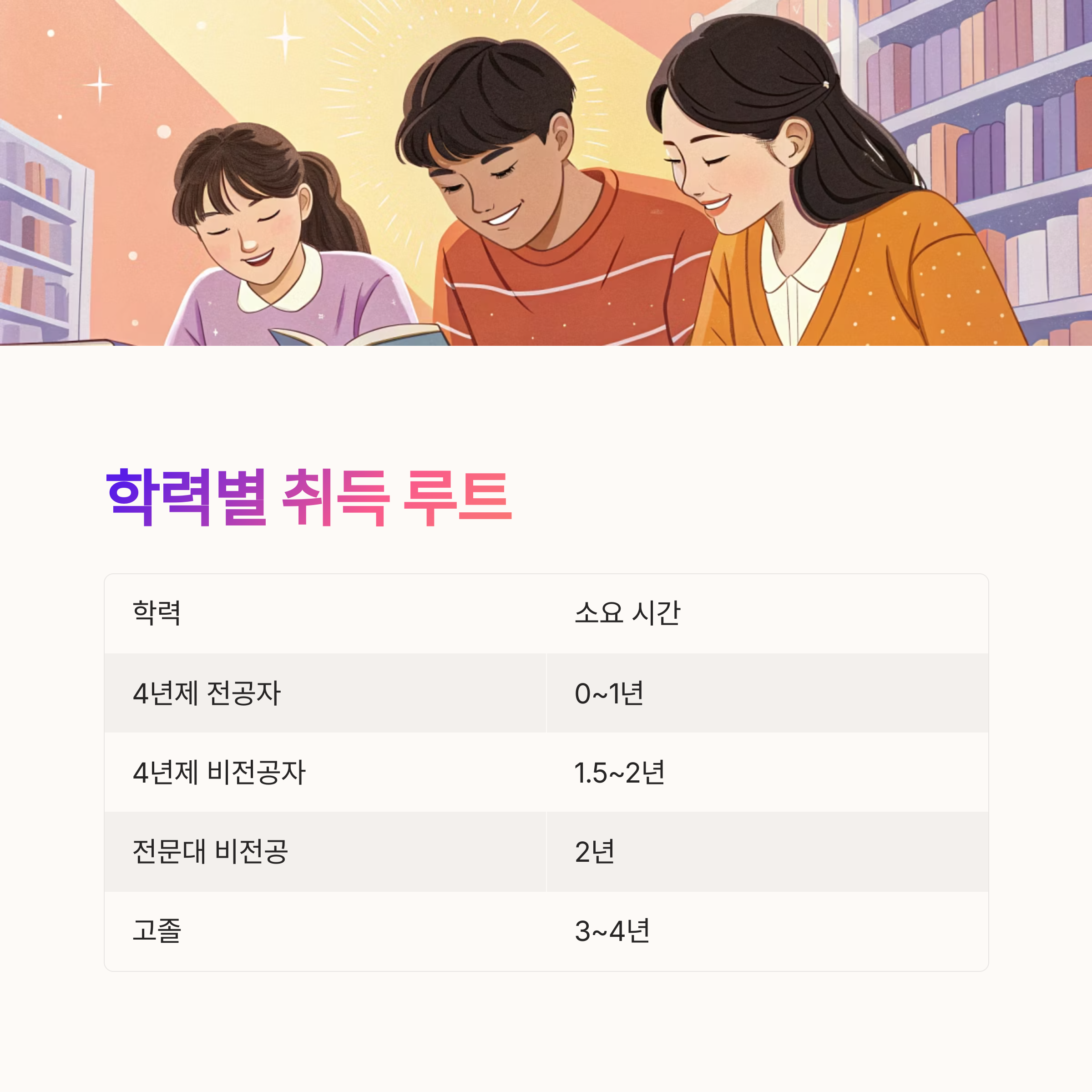 | 4년제 전공자 | 조건 충족 시 바로 신청 가능 | 0~1년 |