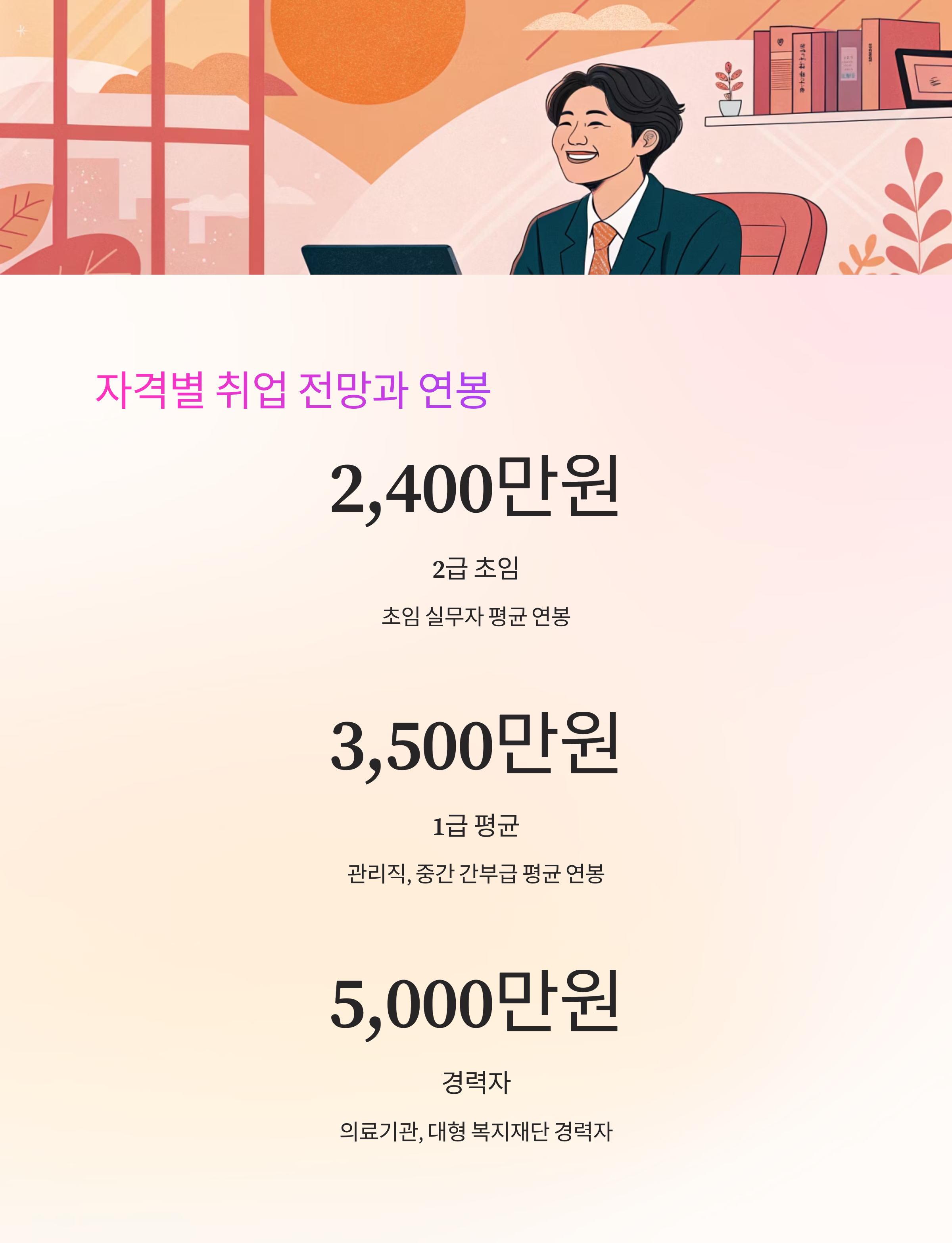 연봉 자체보다는 커리어를 어떻게 설계하느냐에 따라 더 좋은 기회와 조건을 만들 수 있어요. 다양한 경험과 자격을 바탕으로 더 나은 복지 전문가가 될 수 있답니다!