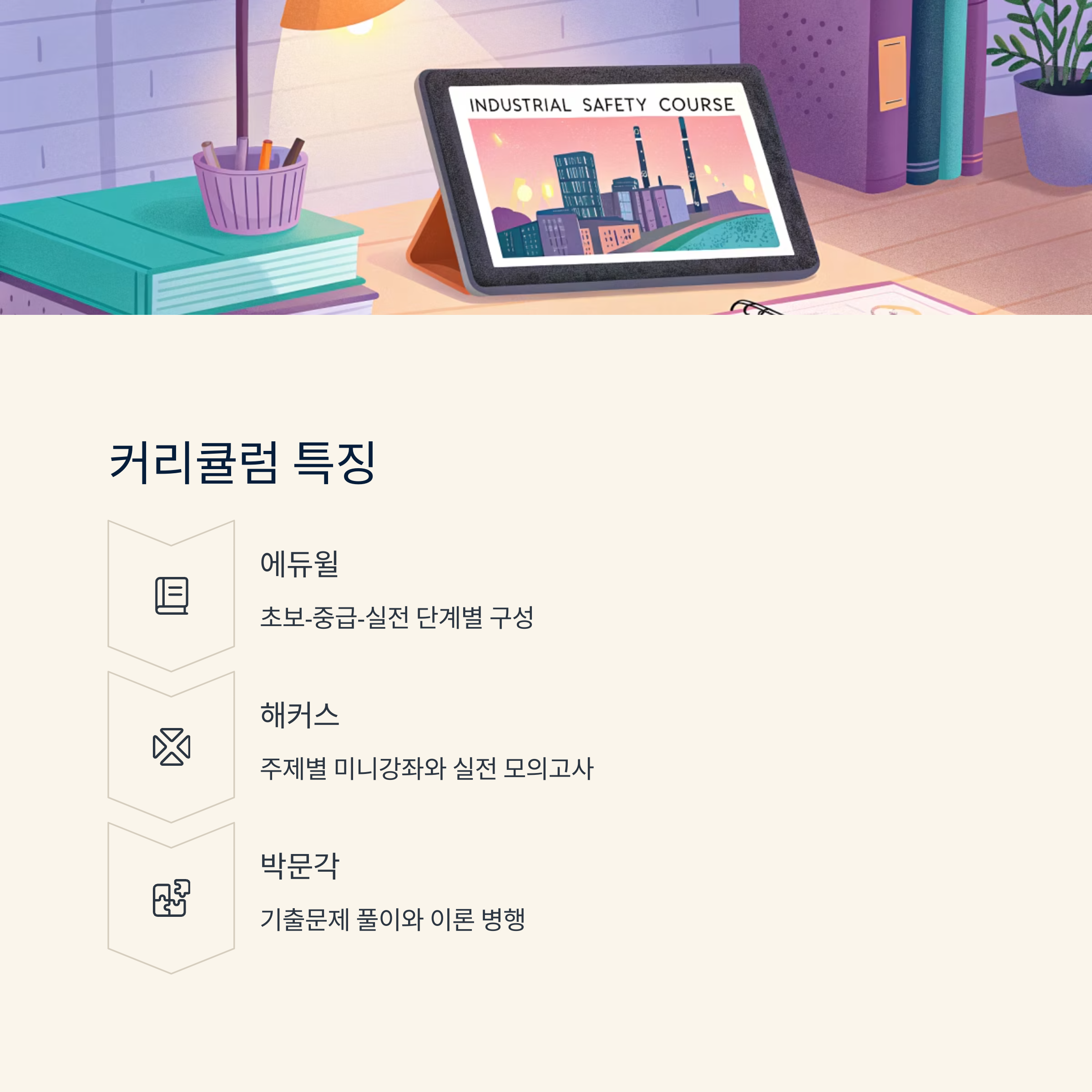 산업 안전 기사 시험은 전공 이론과 실기 모두 중요한 비중을 차지하기 때문에 커리큘럼의 짜임새가 정말 중요해요. 특히 법령 개정이나 출제 경향 변화가 자주 일어나는 분야이기 때문에, 매년 커리큘럼을 새롭게 구성하는 플랫폼이 더 신뢰받아요.