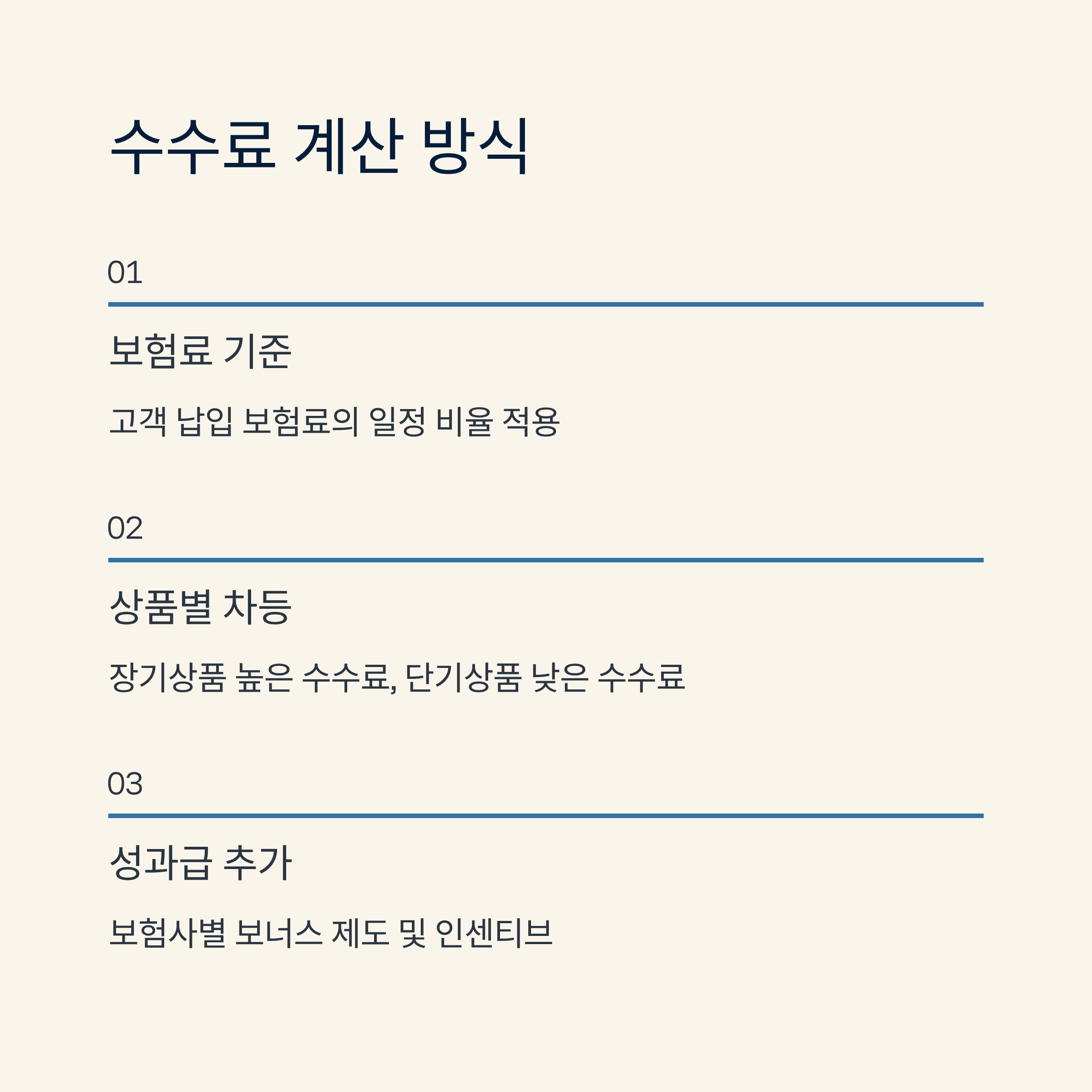 보험사마다 세부 조건이 다르지만 기본적인 틀은 유사해요. 고객이 납입하는 보험료의 일부가 수수료로 책정되며, 초년도와 갱신 계약에 따라 지급 비율이 달라져요. 제가 생각했을 때 이러한 구조는 장기적으로 설계사의 성실한 관리와 고객 만족을 유도하기 위한 장치라고 느껴져요.