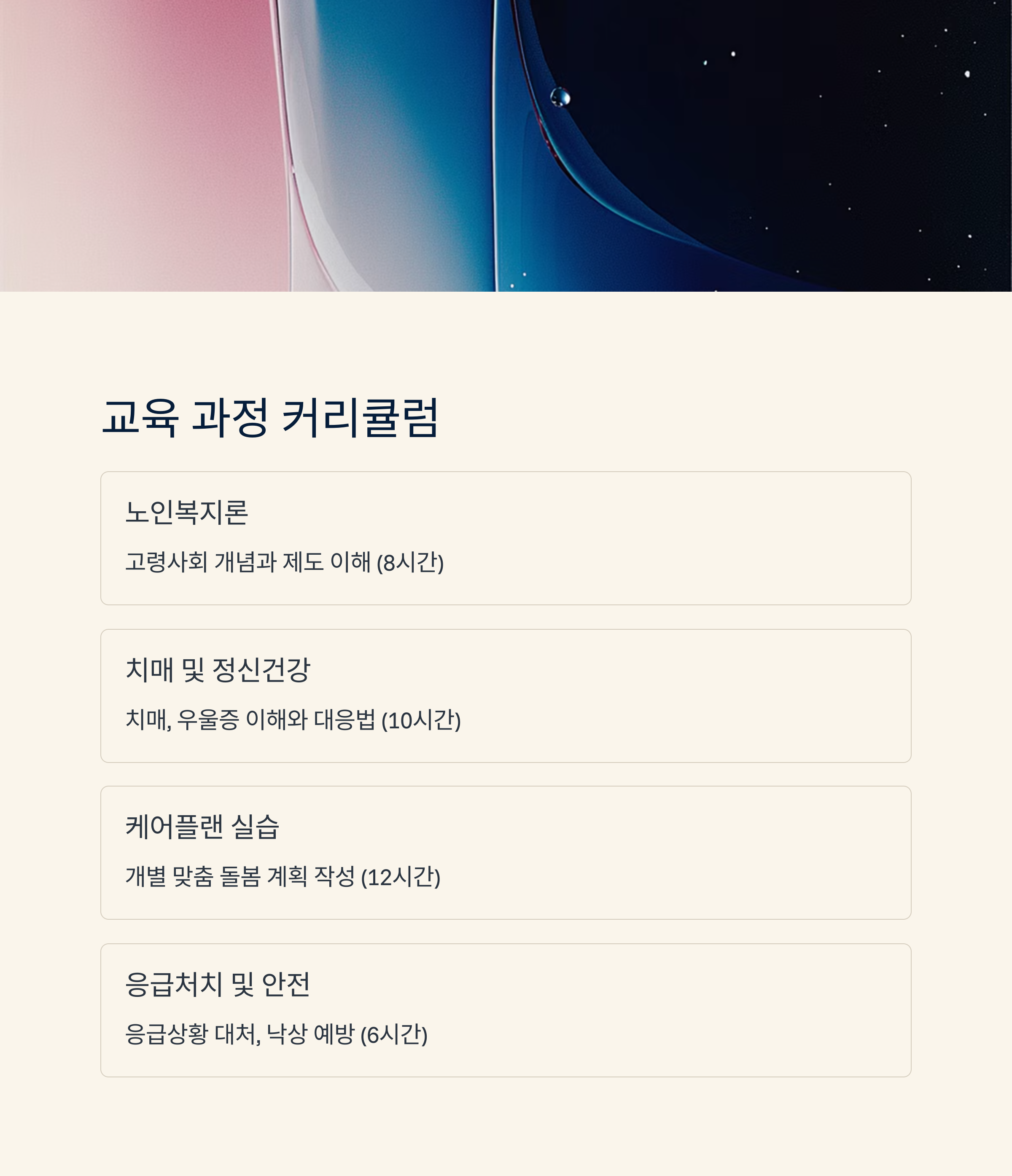 커리큘럼이 꽤 체계적이고 실무 중심이기 때문에 자격증을 딴 이후에도 바로 현장에 투입되기 좋아요. 특히 '케어플랜 작성' 수업은 실전에서 정말 유용하다고들 해요.