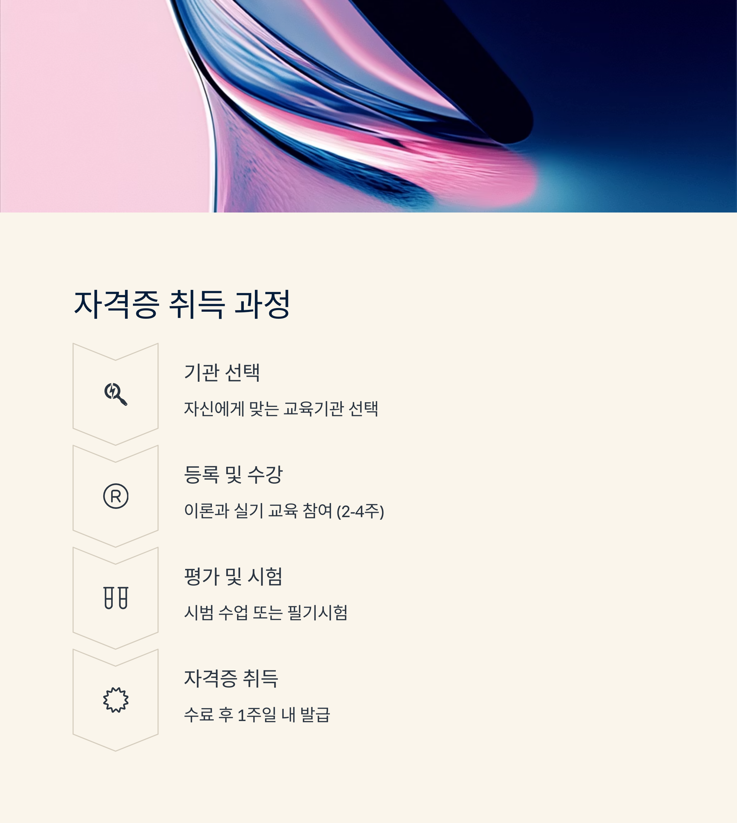 마지막은 자격증 수령이에요. 대부분의 기관에서는 수료 후 일주일 이내에 자격증을 등기 우편이나 PDF 파일로 발송해줘요. 그리고 일부 협회는 정식 활동을 위해 협회 회원 등록을 요구하기도 하니, 활동하려는 경우 해당 절차까지 마무리하면 돼요.