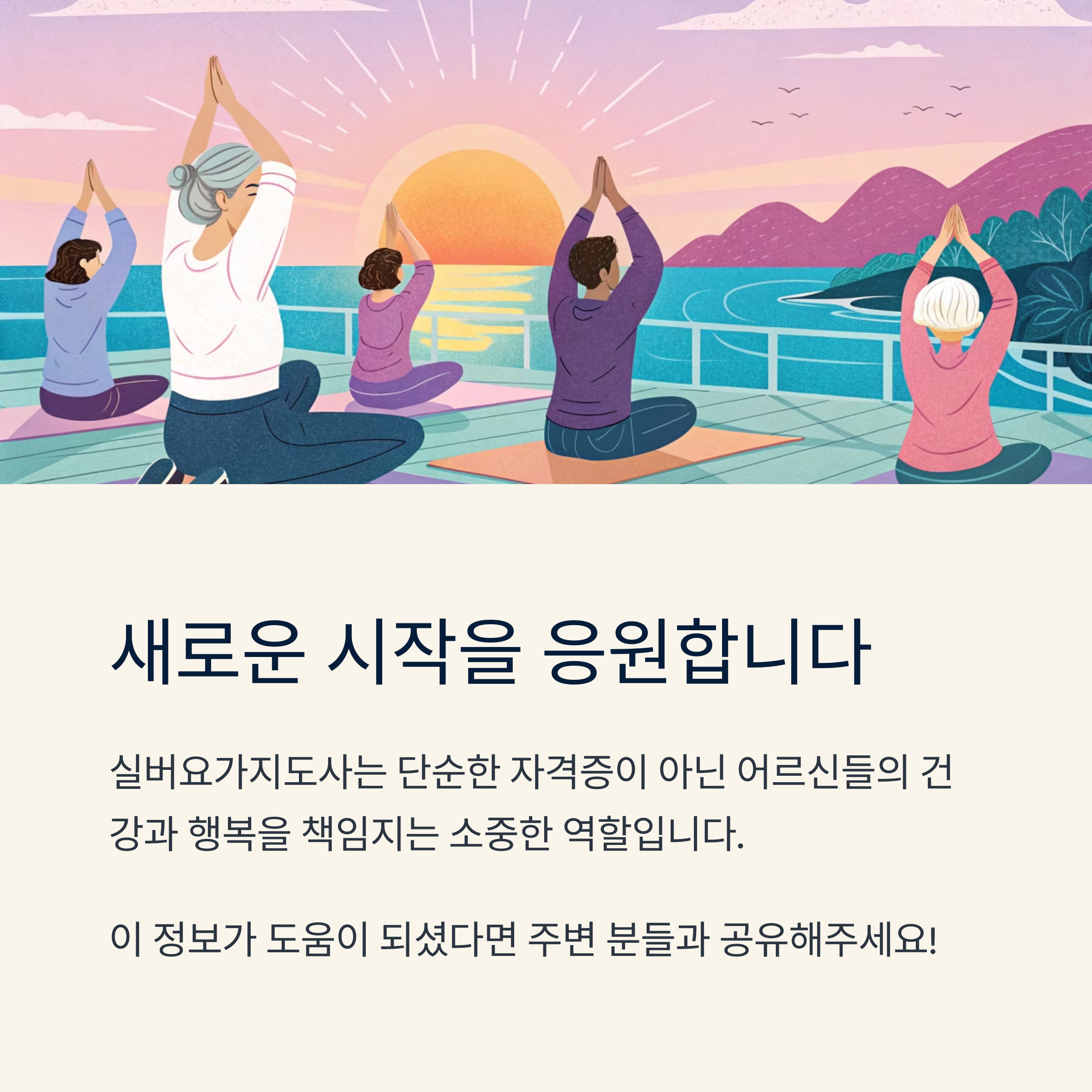 이처럼 실버요가는 몸의 움직임뿐 아니라 마음까지 함께 챙길 수 있는 프로그램이에요. 특히 하루 30분씩만 꾸준히 실천해도 생활의 활력이 달라진다고 해요. 자격증을 준비하는 입장에서도 이런 효과를 몸소 체험하는 것이 중요하답니다.