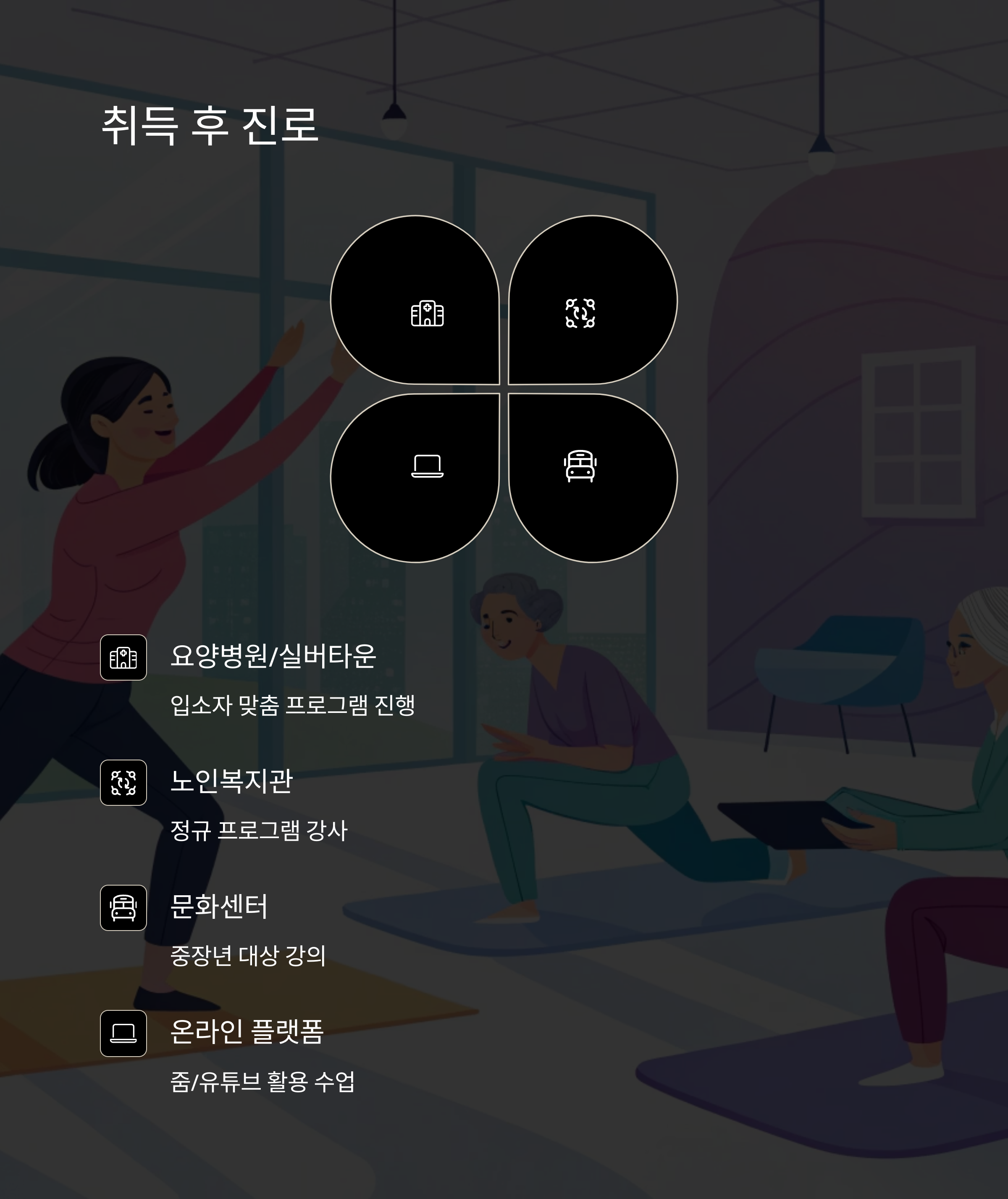 A7. 물론이에요! 오히려 실버 세대가 지도사가 되면 수강생들과 더 잘 통하고 공감대도 생겨서 수업 분위기가 더 좋아져요.