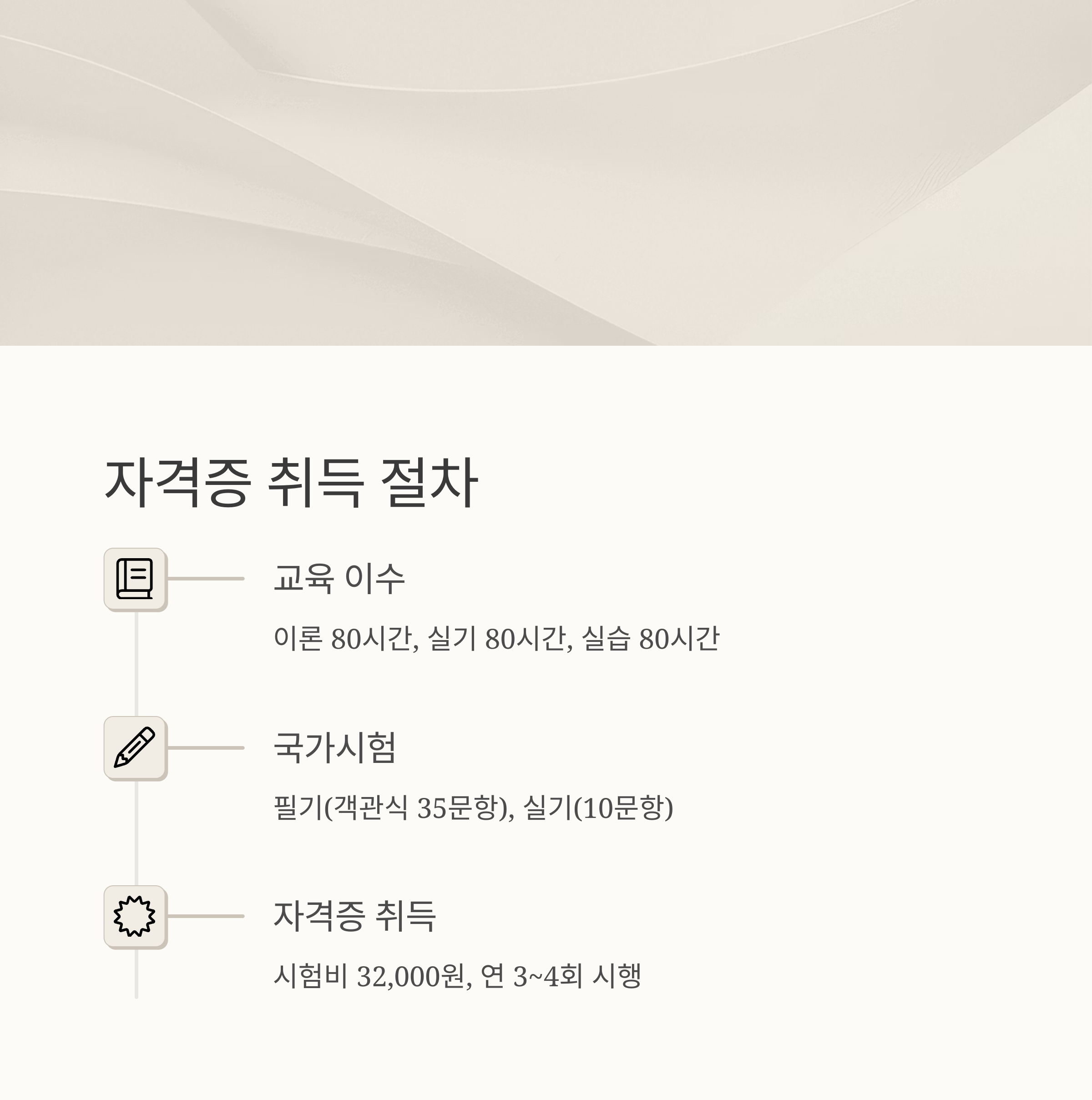 시험비는 32,000원이며, 응시 자격은 교육기관 수료생으로 제한돼요. 다시 말해, 무조건 교육을 먼저 수료해야 시험을 볼 수 있다는 거예요. 이 점 꼭 기억해야 해요!
