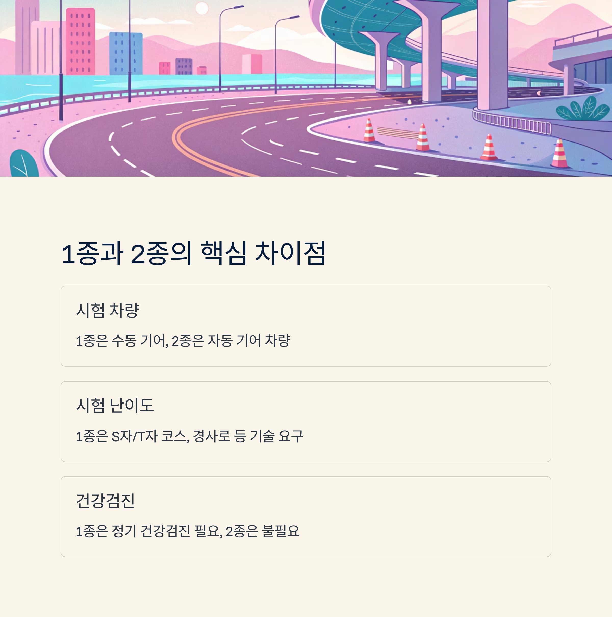 운전면허 발급 이후에도 1종은 정기적으로 건강검진을 받아야 하고, 2종은 그런 의무가 없어요. 이 점도 나중에는 고려 요소가 되기도 해요. 🩺