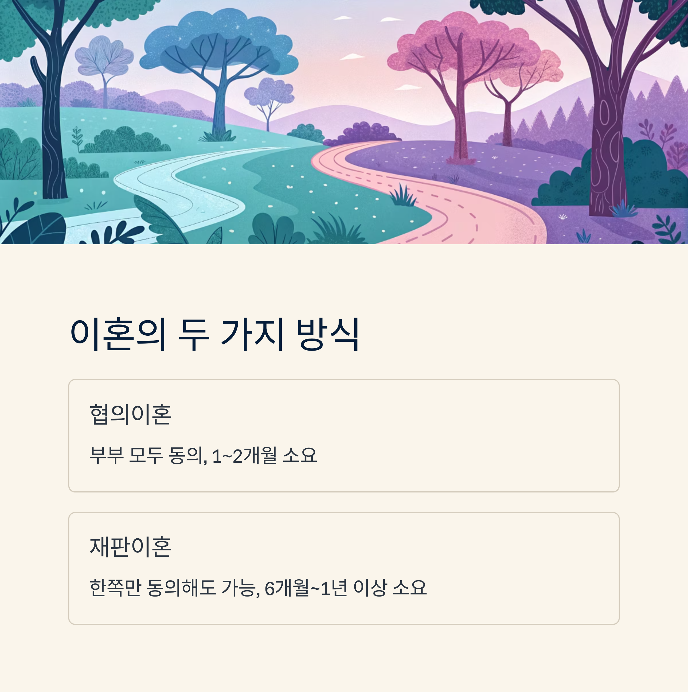 이 표를 보면, 협의이혼은 빠르고 간편하지만 서로의 합의가 필수이고, 재판이혼은 절차가 길고 복잡한 대신 강제로도 이혼을 추진할 수 있다는 점이 있어요. 각 상황에 따라 현명하게 선택해야 해요.