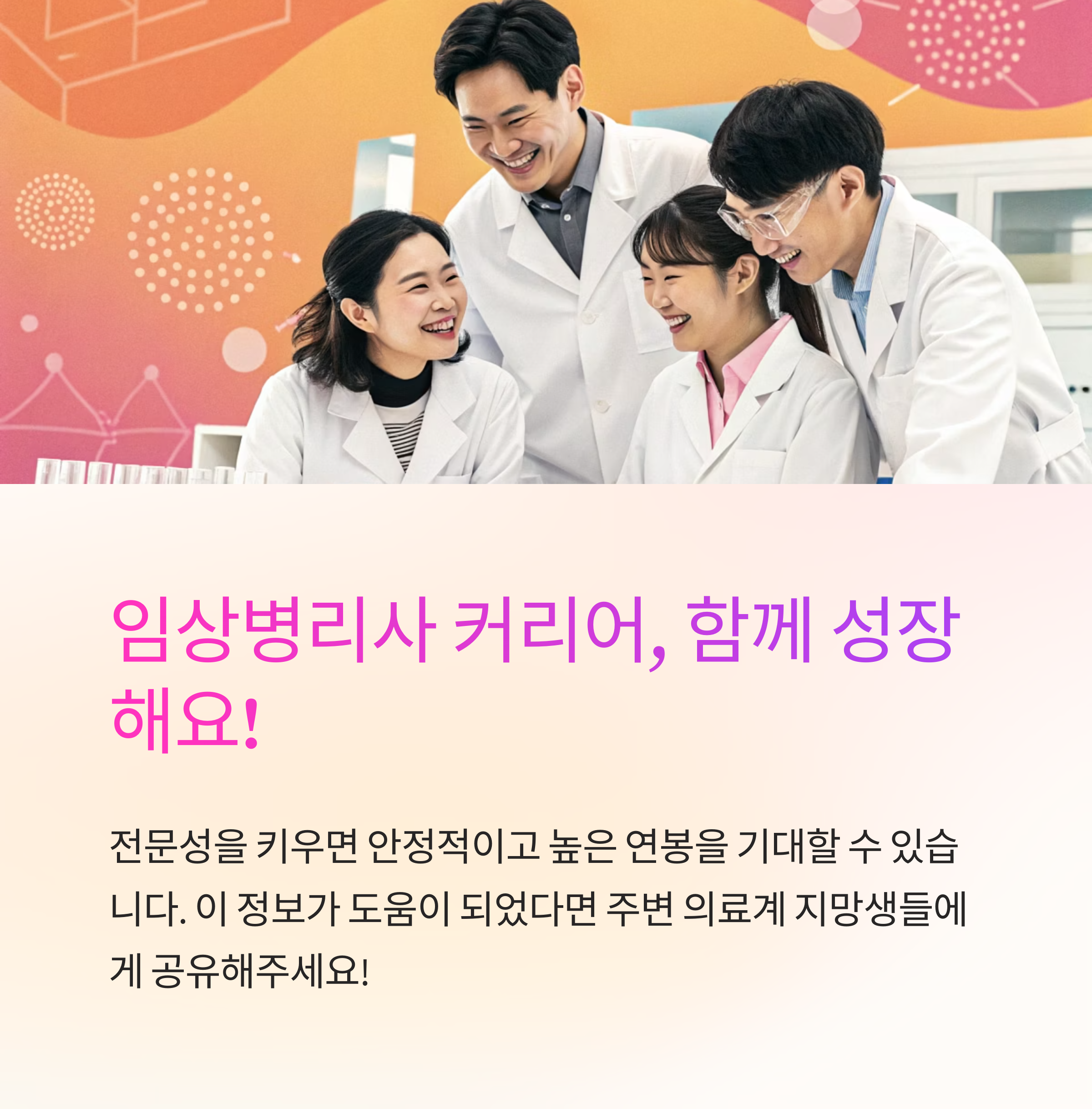 스스로의 전문성을 발전시킬수록 더 나은 근무 환경과 연봉을 얻을 수 있어요. 임상병리사도 충분히 고소득 커리어로 이어질 수 있답니다! 💼