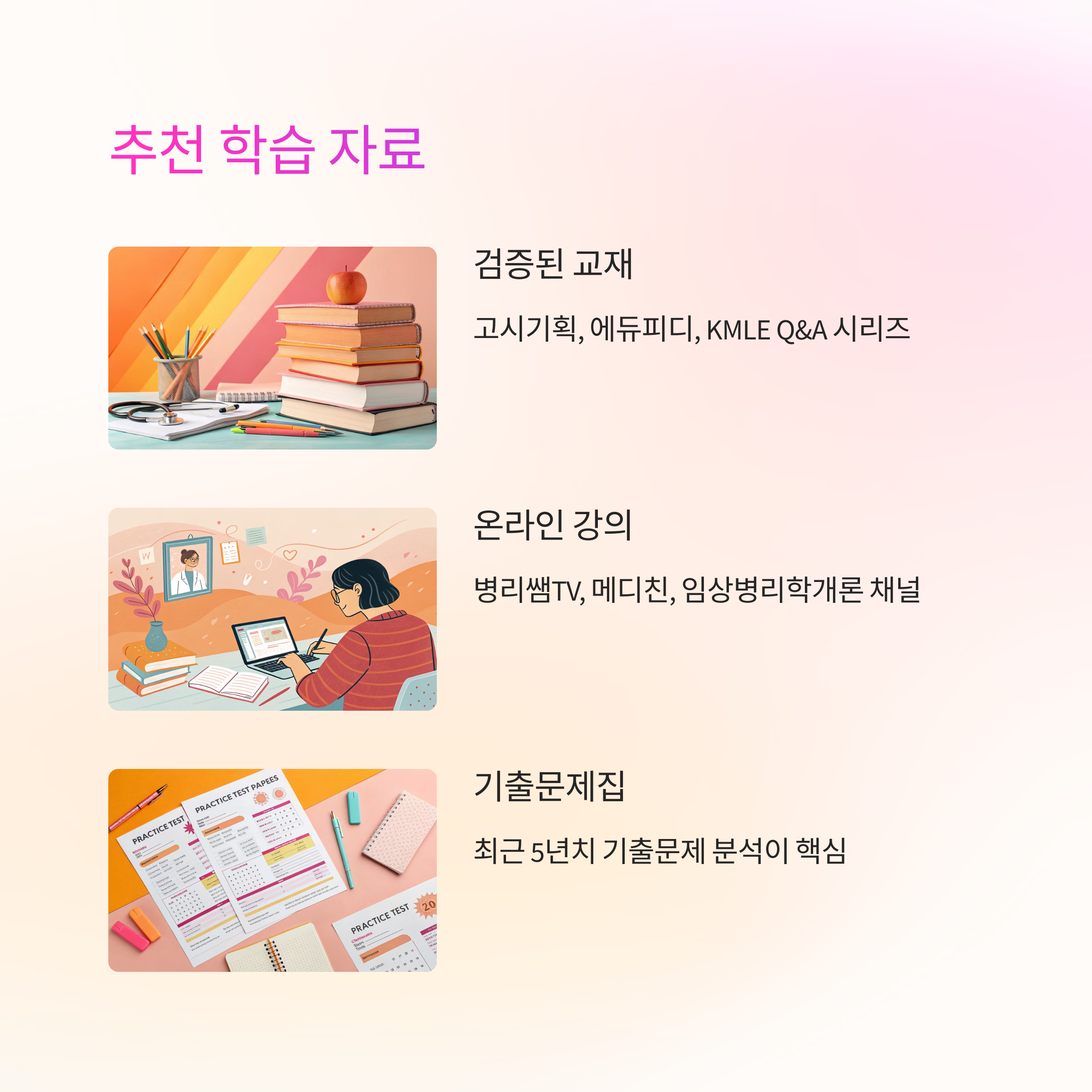 요즘은 유튜브 강의나 온라인 강의도 풍부해요. 특히 '병리쌤TV', '메디친', '임상병리학개론' 강의 같은 채널은 무료 강의도 많고 시험 핵심 포인트를 콕 집어줘서 혼자 공부하기 어려울 때 큰 도움이 돼요.
