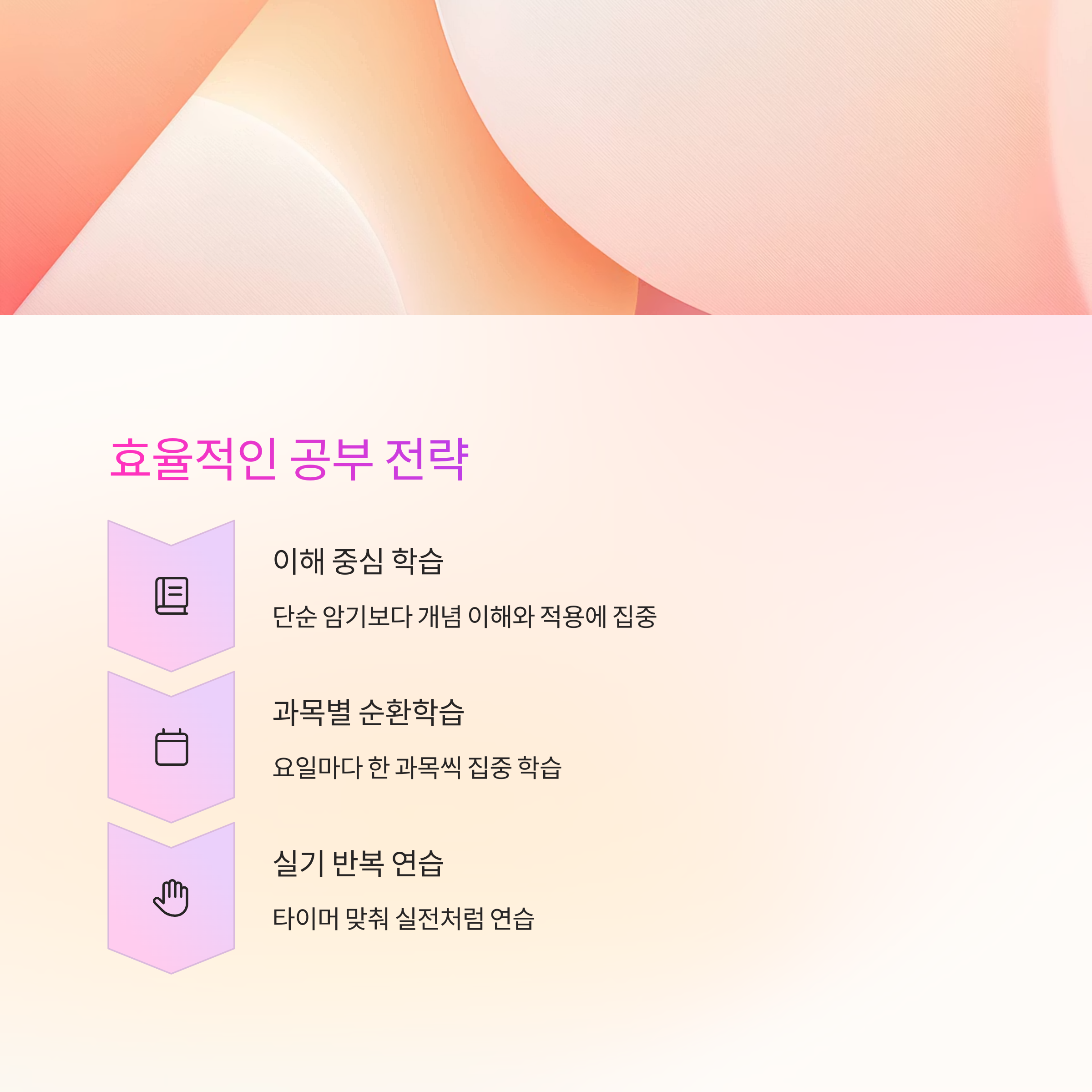 모의고사를 꼭 활용하세요! 기출문제나 모의고사를 주기적으로 풀면서 실전 감각을 익히면 시험 당일 긴장을 덜할 수 있어요. 틀린 문제는 반드시 오답 노트로 정리하고 반복해서 보는 게 중요하답니다.