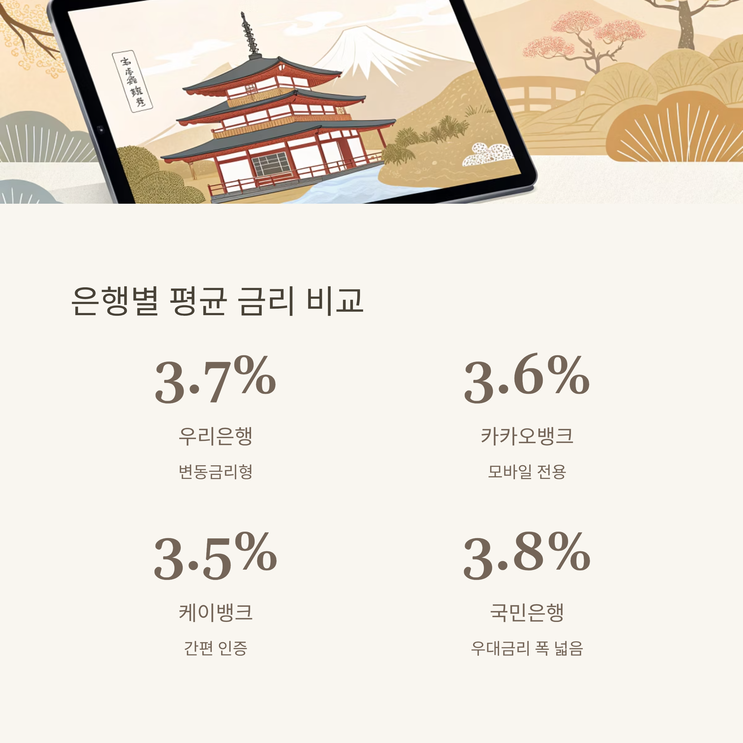 | 케이뱅크 | 4.0% | 3.5% | 간편 인증 절차 |