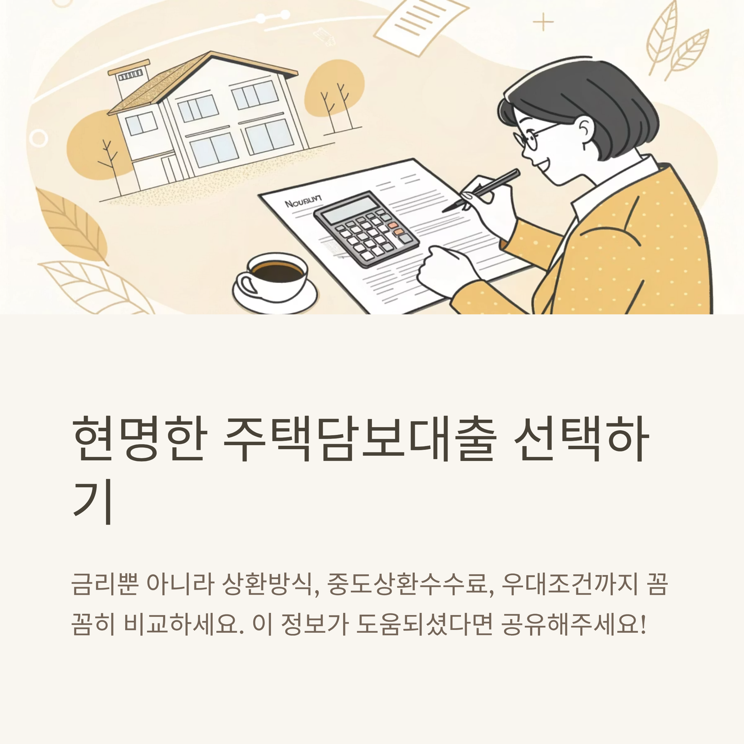 주택담보대출을 알아볼 때는 반드시 상환 방식, 중도상환 수수료, 우대금리 조건, 한도 등도 함께 비교해야 해요. 단순 금리만 보고 계약하면 나중에 예기치 못한 비용이 발생할 수 있거든요. 그래서 오늘은 최신 금리 정보와 함께 은행별 특징, 금리 절약 팁까지 정리해 드릴게요.