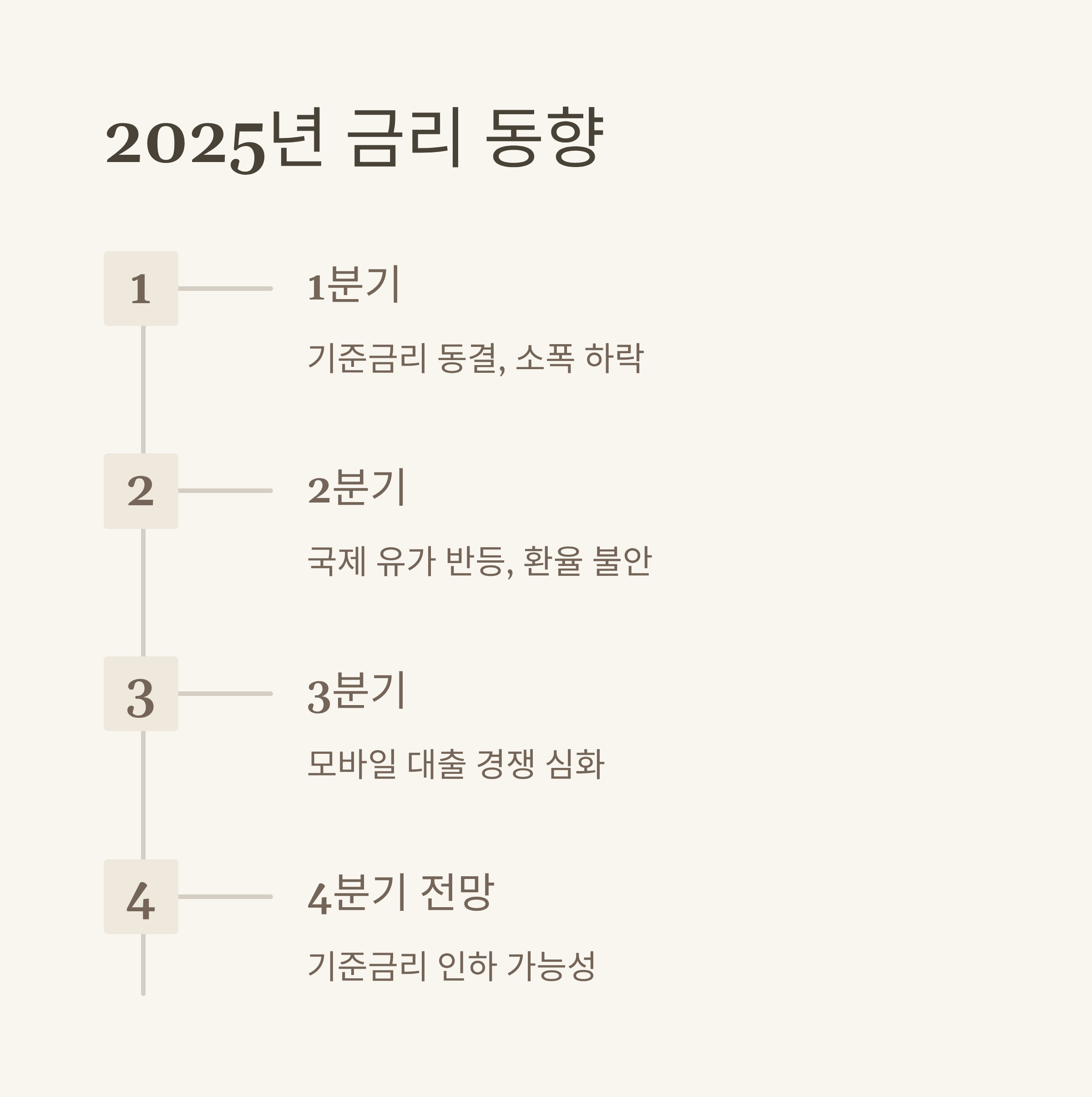 2025년 금리 동향을 보면, 상반기는 조심스러운 하락세, 하반기는 완만한 인하 가능성이 포인트예요. 대출 계획이 있다면 3~4분기 사이가 기회가 될 수 있어요.