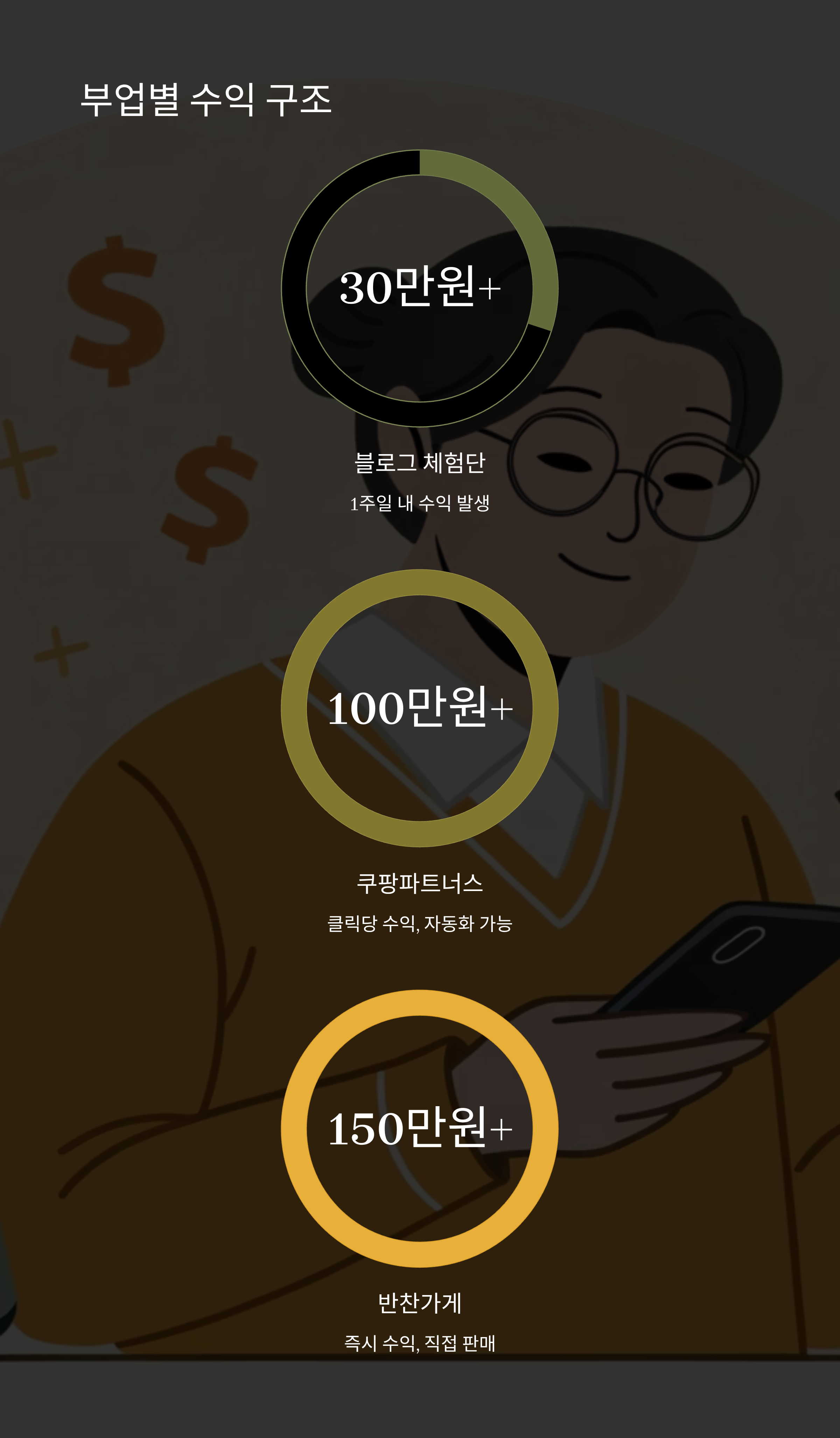 블로그 체험단은 월 10~30만 원, 쿠팡파트너스는 5만~100만 원까지도 가능하고요. 스마트스토어는 초보 셀러라도 월 30만 원부터 시작해 300만 원 이상 수익을 내는 분도 많아요. 전자책은 한 권당 1,000~3,000원의 수익이 누적되며, 수십 권이 되면 월 100만 원 이상도 가능하죠.