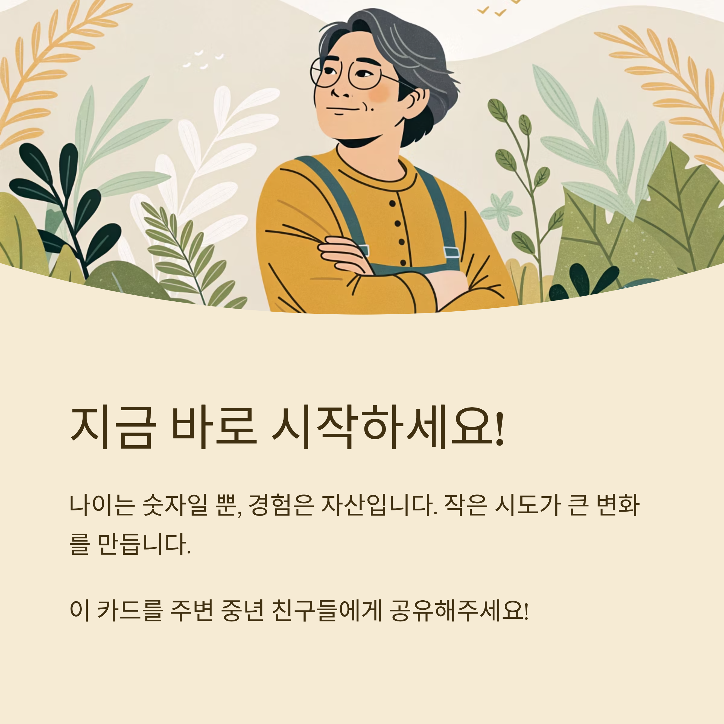 중년의 부업은 단순히 돈을 버는 게 목적이 아니라, 나의 시간을 가치 있게 쓰는 방법이에요. 시간은 누구에게나 평등하지만, 그걸 어떻게 쓰느냐에 따라 결과는 천차만별이 되죠. 지금 이 순간 작은 시도를 시작해보는 것, 그것이 가장 큰 변화의 시작이에요. 🌱