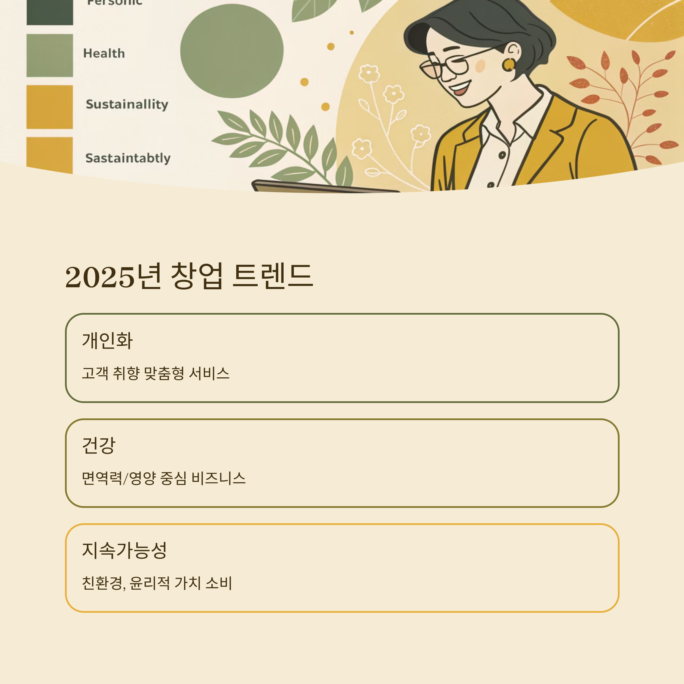 2025년 창업 시장에서 눈에 띄는 키워드는 ‘개인화’, ‘건강’, ‘취향’, ‘지속가능성’이에요. 특히 팬데믹 이후부터 이어진 비대면 문화와 건강 중심 라이프스타일은 여전히 강력한 흐름으로 남아 있어요.