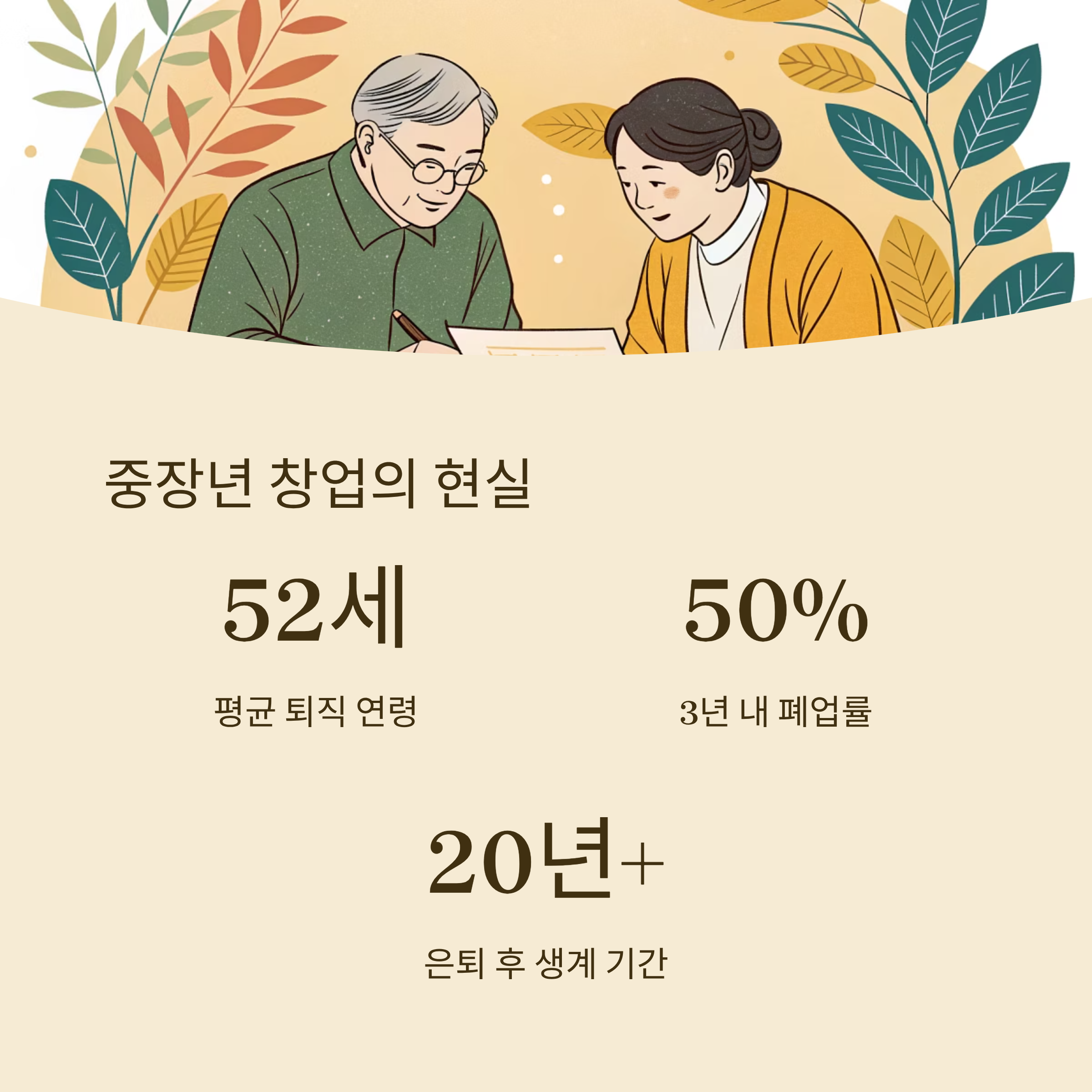 대한민국의 중장년층은 퇴직 시기가 빠르다는 특징이 있어요. 평균 퇴직 연령은 52세로, 그 이후 20~30년 이상의 생계가 필요한 시점이에요. 이로 인해 재취업보다는 창업을 고려하는 사람이 늘고 있어요. 특히 자녀 교육이 끝나고 상대적으로 시간 여유가 생기면서 "나만의 일터"를 꿈꾸는 분들도 많죠.