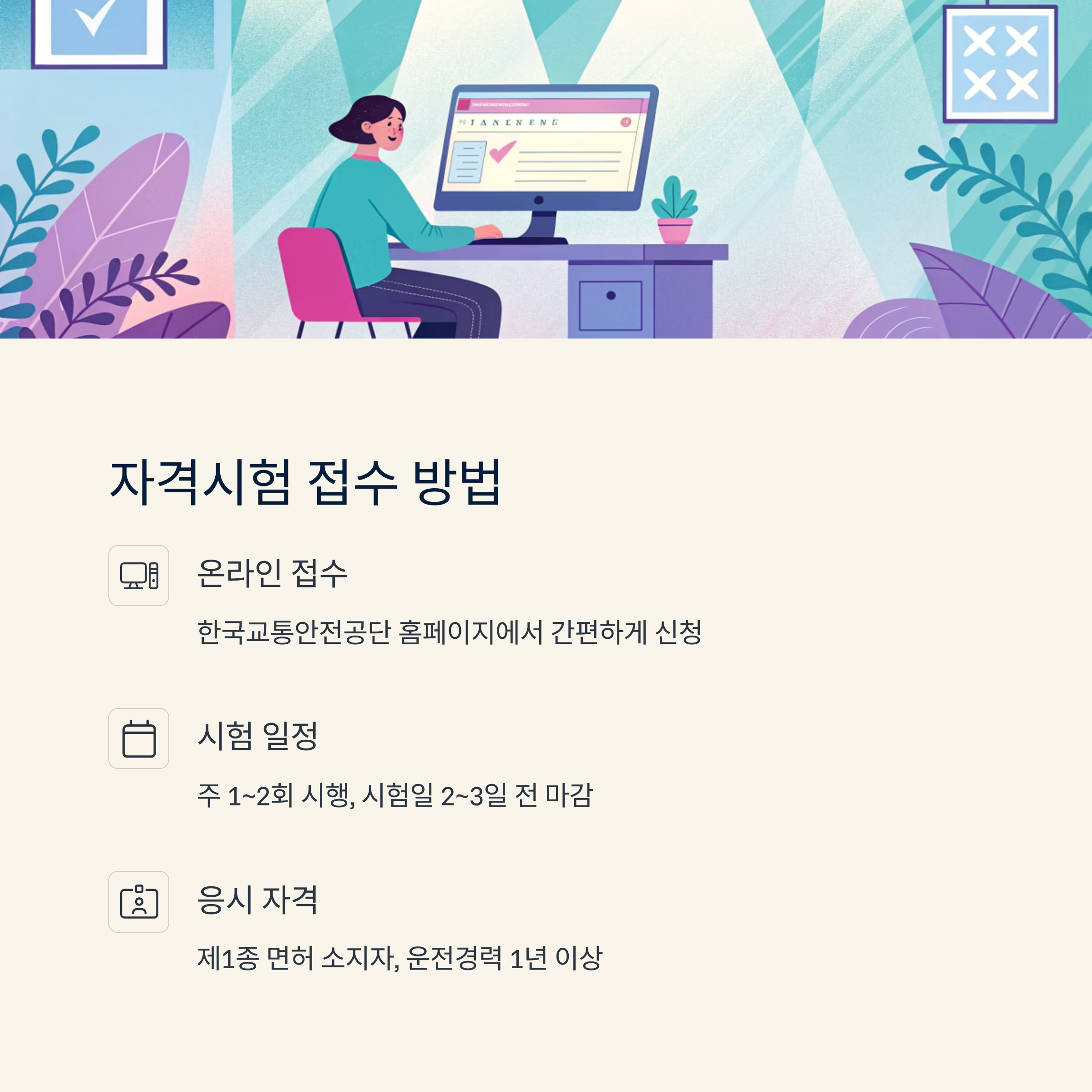 또한, 응시자격은 운전경력 1년 이상인 제1종 보통면허 이상 소지자만 응시할 수 있으니 이 조건을 꼭 확인해야 해요.