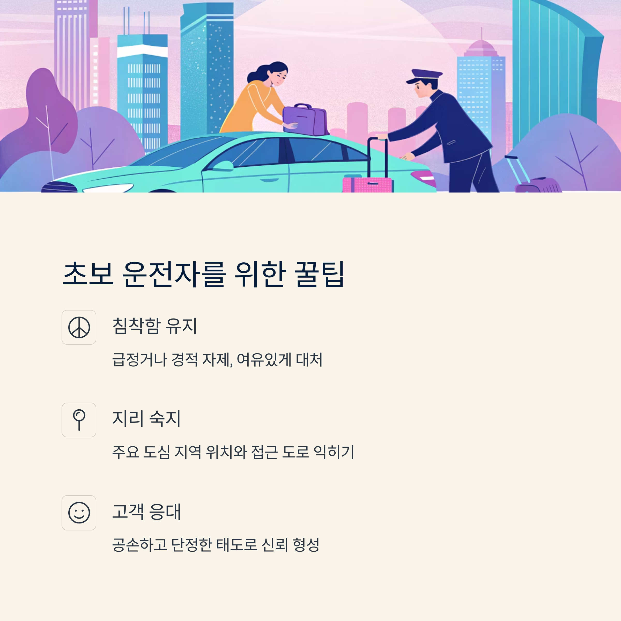 이런 팁들을 잘 기억하고 실천하면 초보 운전자에서 '믿을 수 있는 택시 기사님'으로 금방 인정받게 될 거예요. 처음에는 긴장되겠지만, 경험이 쌓이면 자연스럽게 익숙해질 거니까 걱정 마세요! 🚕