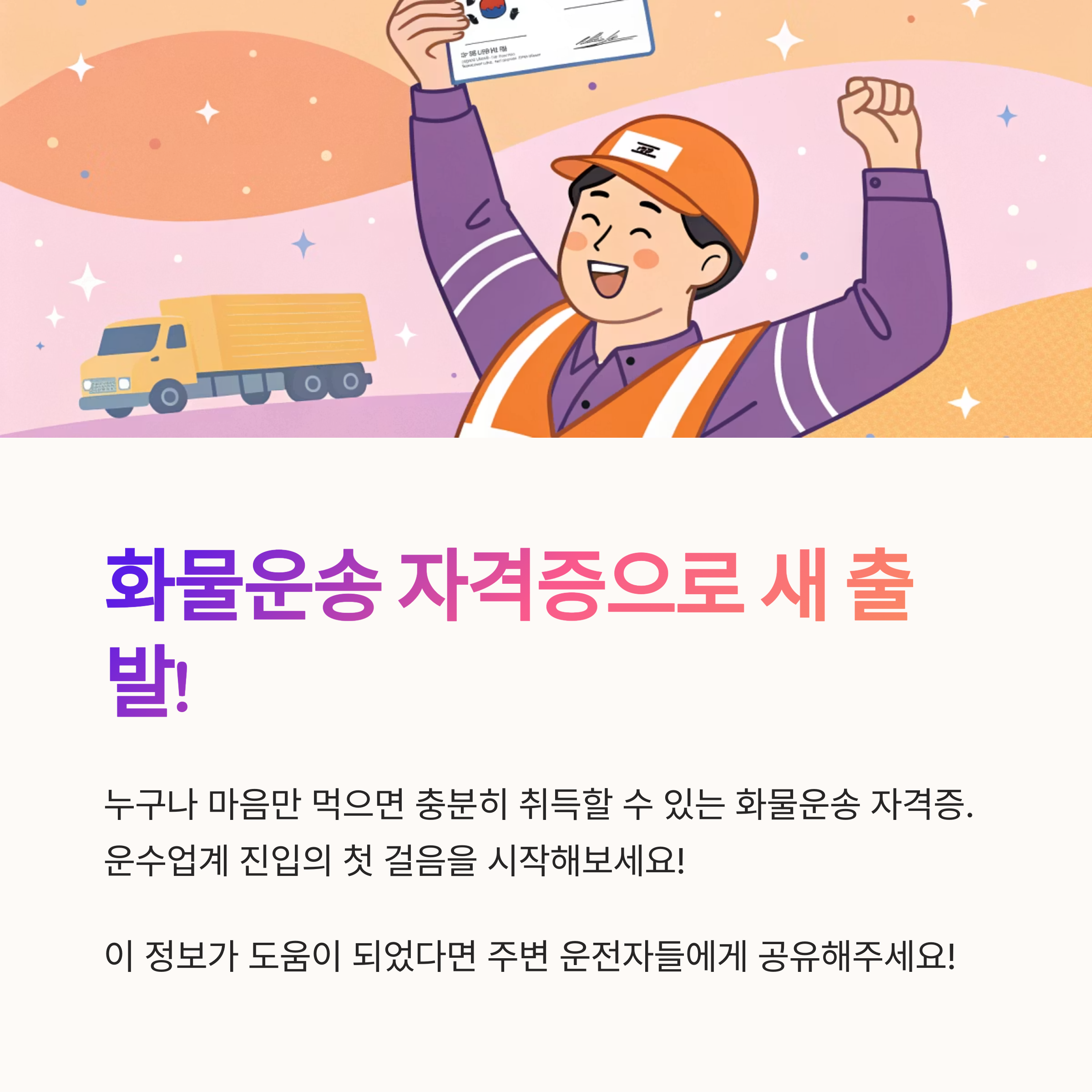 내가 생각했을 때 이 자격증은 누구나 마음만 먹으면 충분히 딸 수 있는 수준이에요. 합격률도 높고, 준비 시간도 길지 않기 때문에, 조금만 관심 가지면 누구나 운수업계에 진입할 수 있어요. 🚛